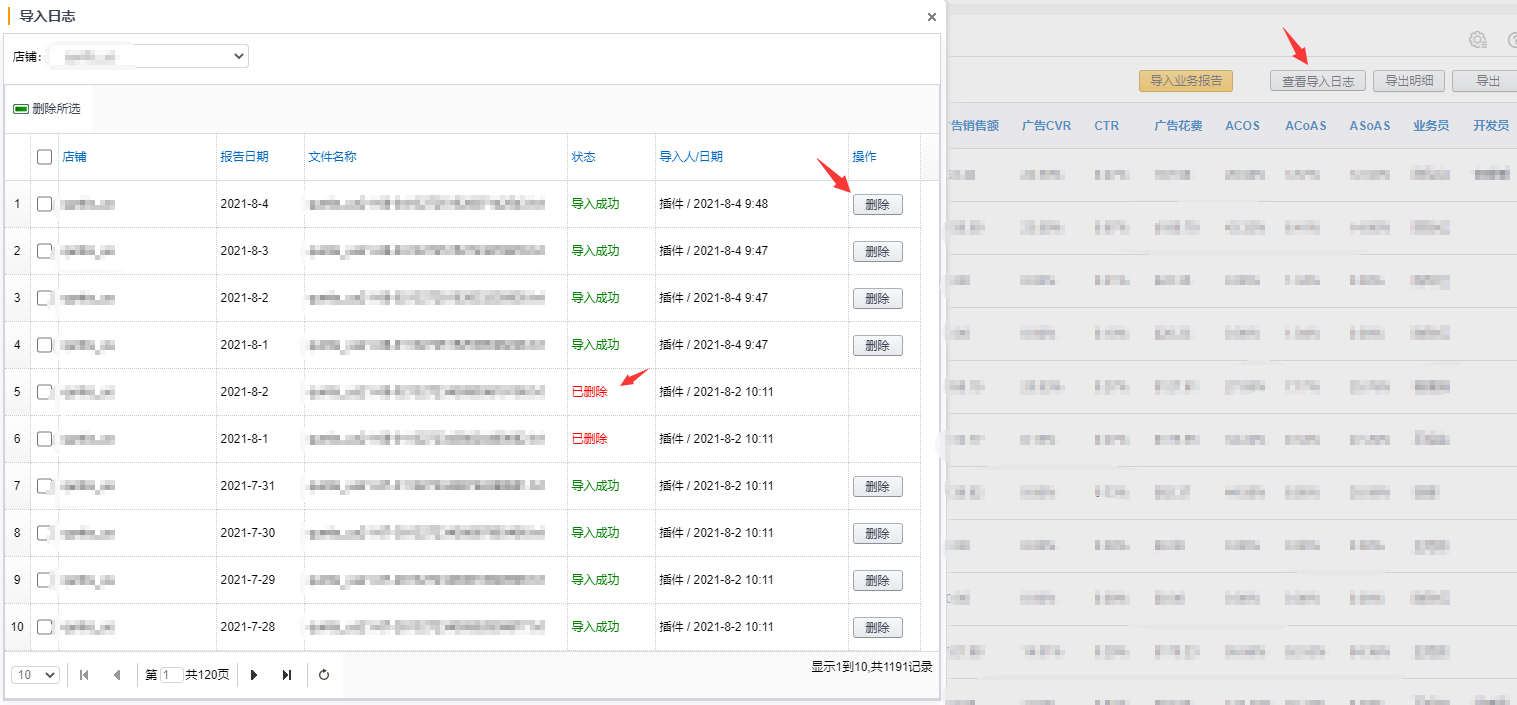 5、通過查看導(dǎo)入日志功能,可以查看店鋪的業(yè)務(wù)報告導(dǎo)入情況。